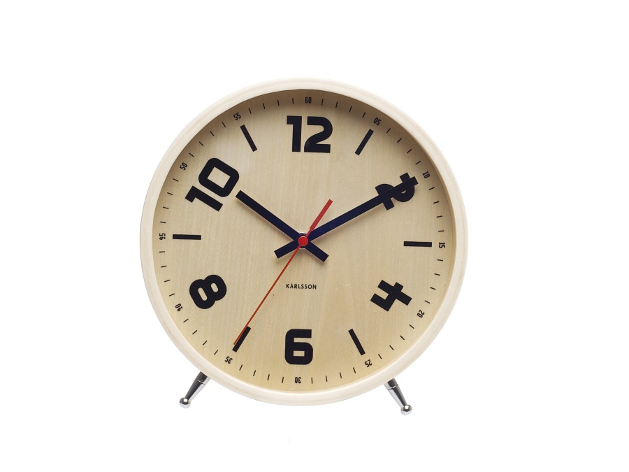Pěkné hodiny s výrazným ciferníkem a možností postavení i zavěšení.